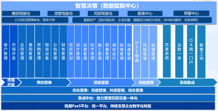 實現了集團所有在建項目成本、合約、合同、物資、設備、結算、技術、安全、質量等業務模塊的全覆蓋。