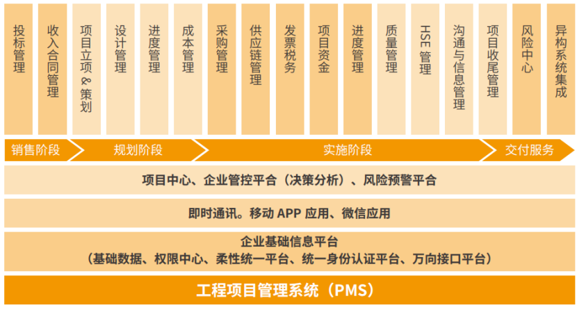 基于企業客戶庫跟蹤有效商機,獲取投標機會并參與投標。通過PMS系統讓市場營銷、工程管理、采購、合規法務、財務等部門參與投標評審,識別和控制投標風險,跟蹤保證金、保函收回,測算投標成本與中標利潤率,與項目實施緊密銜接,積累投標報價與標書模板并進行企業投標分析。