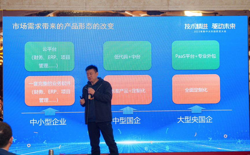原總結合當前產品研發面臨的挑戰、年度重點產研任務等內容,在會上作了題為“技術精進的執著”的主題報告。原總表示,推進未來產品研發技術的精進,需要我們共同關注來自市場需求、市場競爭、技術發展、非功能性需求等多方因素給產品研發帶來的挑戰。原總還重點圍繞新中大i8、錢潮平臺等年度重點產品研發工作內容作了規劃介紹。