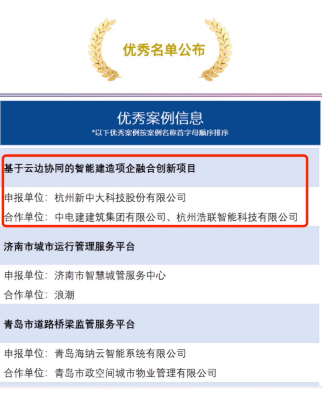 本次評(píng)選共設(shè)數(shù)字治理、數(shù)字經(jīng)濟(jì)、智慧生活、智慧出行、綠色低碳、城市創(chuàng)新、智慧安防、智慧鄉(xiāng)村八大評(píng)選板塊。評(píng)選活動(dòng)從2023年3月1日對(duì)外發(fā)布公開征集申報(bào)資料,共收到來(lái)自國(guó)內(nèi)19個(gè)省、直轄市、自治區(qū),應(yīng)用于44座城市的共計(jì)206個(gè)城市數(shù)字化轉(zhuǎn)型案例申報(bào)材料,通過(guò)公開征集、案例初評(píng)、專家打分點(diǎn)評(píng)等環(huán)節(jié),由新中大科技、中電建建筑集團(tuán)有限公司、杭州浩聯(lián)智能科技有限公司聯(lián)合申報(bào)的“基于云邊協(xié)同的智能建造項(xiàng)企融合創(chuàng)新項(xiàng)目”作為數(shù)字經(jīng)濟(jì)領(lǐng)域的優(yōu)秀案例在一批優(yōu)秀的數(shù)字化轉(zhuǎn)型案例脫穎而出,成功入選了“全球智慧城市博覽會(huì)·上海”2023城市數(shù)字化轉(zhuǎn)型優(yōu)秀案例。
