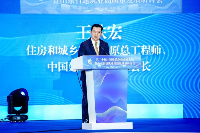 山東省住房和城鄉建設廳廳長王玉志介紹了山東省近十年建筑業的發展情況和主要成績。他指出,山東正錨定“走在前、開新局”,以建設綠色低碳高質量發展先行區為總抓手,深入落實黃河重大國家戰略,全面開展基礎設施“七網”行動,建筑業發展的前景更加光明、空間更加廣闊。作為建筑行業的管理者、從業者、參與者,要準確把握大局、順應大勢,著力培育骨干企業,強力鍛造產業鏈條,加力推進綠色發展,傾力打造“齊魯建造”品牌,全力譜寫建筑業高質量發展新篇章。