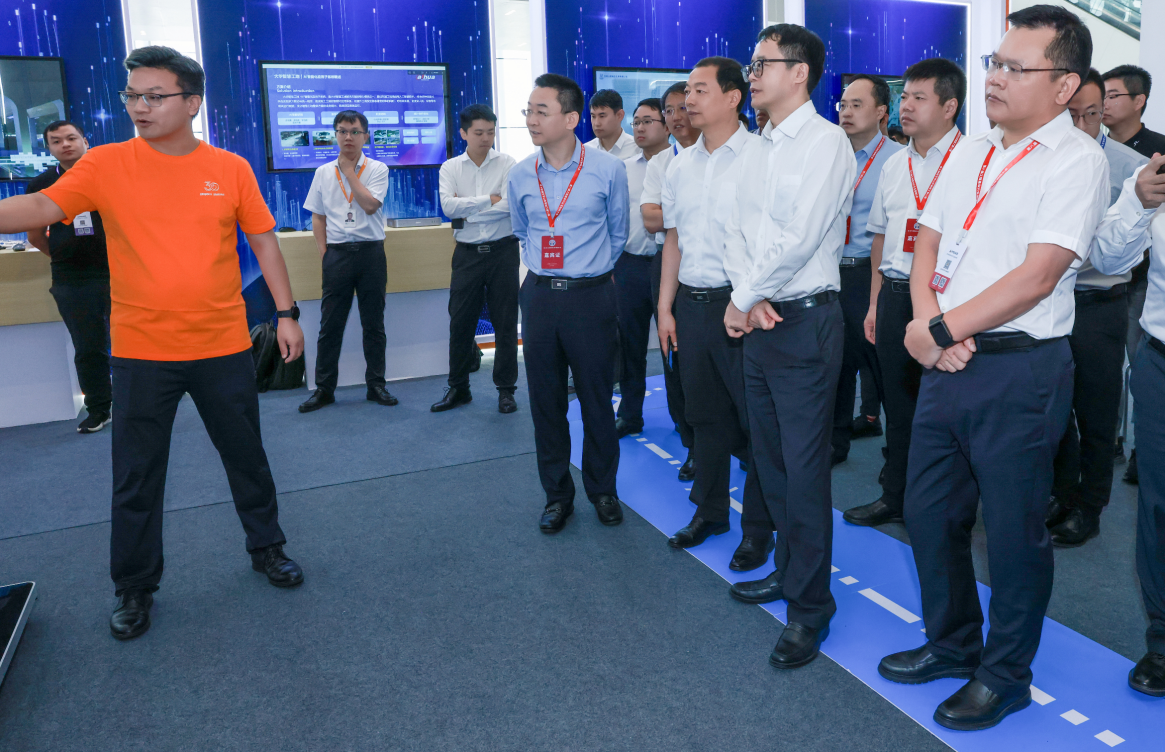 中國施工企業管理協會會長王海懷、副會長兼秘書長尚潤濤等一行領導,在總裁韓愛生的陪同下一同全程參觀體驗了新中大“12345”沉浸式數字化轉型體驗區。