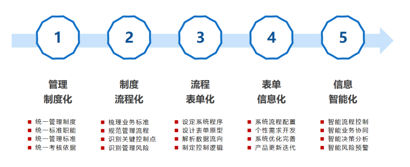 第三步:基于藍圖方案成果,將關鍵管理動作內置系統管控邏輯中,形成系統業務流程和功能;